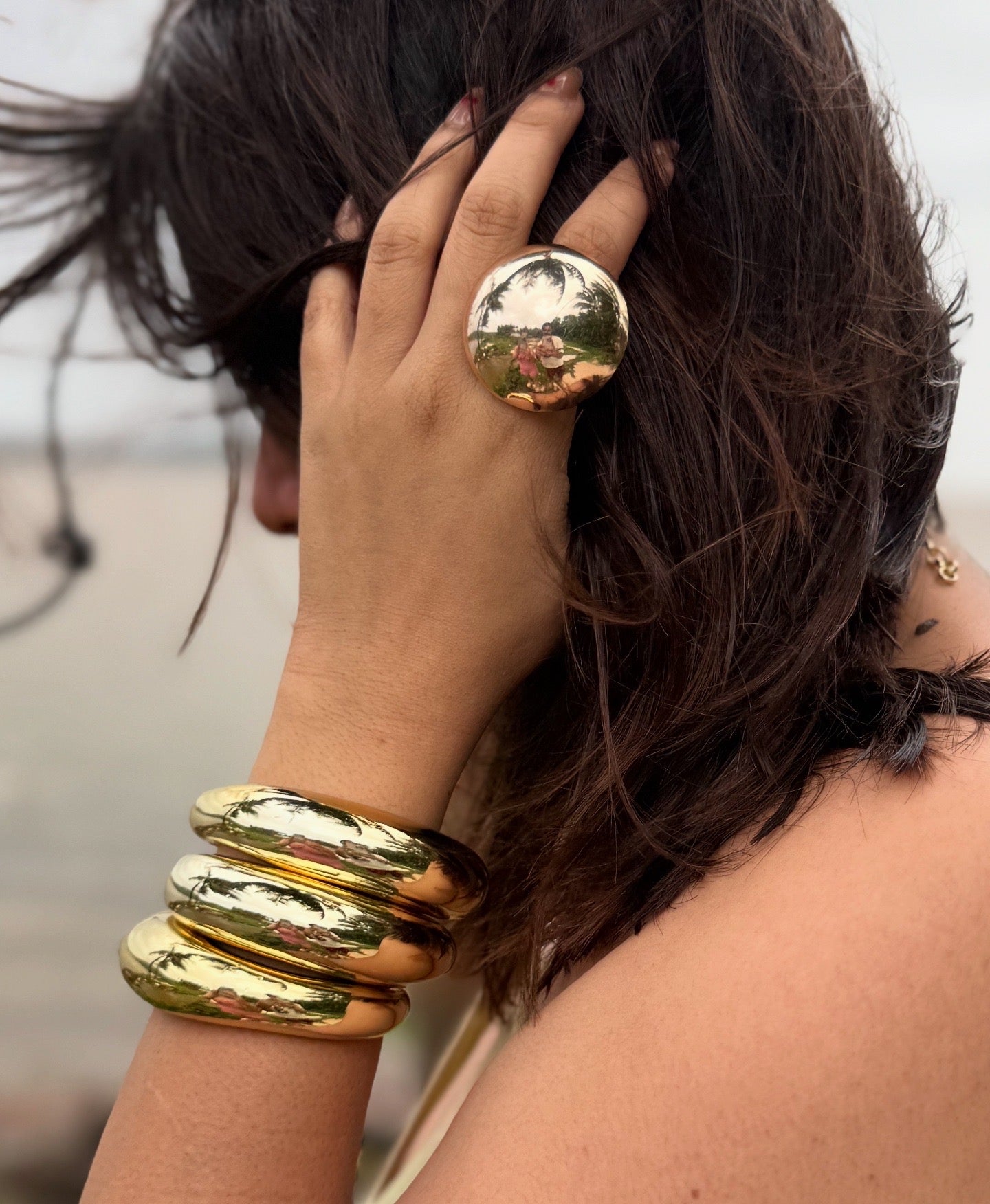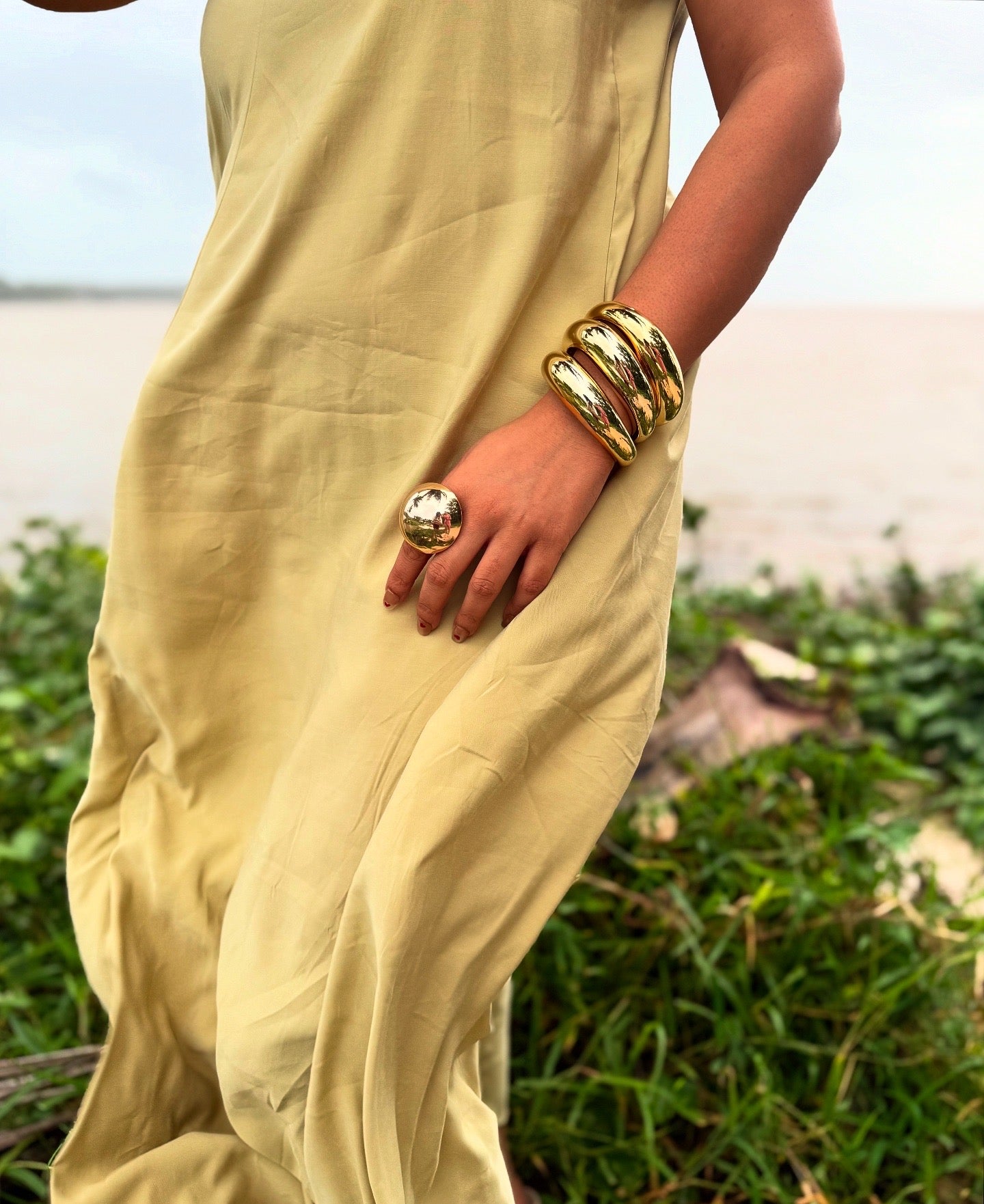 Make way for drama — the volume stack is not for the faint-hearted. These ultra-lightweight, chunky acrylic cuffs are designed to look like melted gold, sculpted into perfection. Bold in form but featherlight on the wrist, this stack makes a statement without saying a word. Slip them on and let your wrists do the talking.